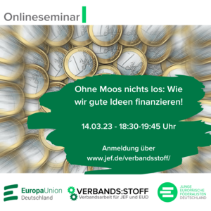JEF/EUD-Online-Akademie: „Ohne Moos nichts los: Wie wir gute Ideen finanzieren!“