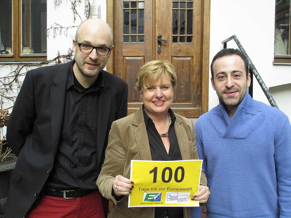 Generalsekretär Christian Moos, Vizepräsidentin Eva Högl MdB und Daniel Matteo, Vorsitzender der Jungen Europäischen Föderalisten Deutschland, sind für EUD & JEF beim #CountdownEP2014 dabei.