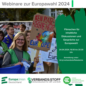 Jetzt geht es in die heiße Phase vor der Europawahl. Bei unserer digitalen verbands:stoff-Akademie am 24. April um 19 Uhr machen wir uns fit für die inhaltlichen Diskussionen und Gespräche bei Aktionen, Infoständen und Veranstaltungen. Nachdem wir uns bei einem Webinar mit der Gesprächsführung an sich befasst haben, geht es jetzt um Fakten und inhaltliche Argumente, die für die EU sprechen. Dabei wollen wir einen besonderen Blick auf die Themenkomplexe Klima und Energie, Asyl und Migration, Wirtschaft und Währung sowie Bürokratie werfen.