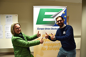 In einer gemeinsamen Resolution formulierten beide Verbände ihre Erwartungen an die deutsche Ratspräsidentschaft. Ob öffentliche Ratssitzungen im Gesetzgebungsprozess, die Stärkung des Spitzenkandidatenprinzips oder eine Konferenz zur Zukunft Europas unter größerer Einbindung der organisierten Zivilgesellschaft — zahlreiche Forderungen könnten ohne Vertragsänderung umgesetzt werden. In einem weiteren Beschluss forderten beide Ver-bände eine Fortführung der grenzüberschreitendenden Interreg-Förderung, die Festschreibung deren dezentraler Verwaltung und die Ausdehnung der Fördergebiete. Nach dem gemeinsamen Bundesausschuss schloss sich nahtlos die Verbandsakademie an. Die Ehrenamtlichen ließen das Jahr Revue passieren, berichteten über ihre Hochs und Tiefs, die daraus gewonnenen Erkenntnisse und stellten ihre Pläne für 2020 vor. Beim abendlichen Imbiss suchten sich die „jungen Hüpfer“ und „alten Hasen“ einen „Buddy“ aus der jeweils anderen Kategorie, tauschten sich über ihre europäischen Erlebnisse und ihr Engagement aus und lernten einander besser kennen. So entstanden neue Verbindungen für die künftige Zusammenarbeit von EUD und JEF. Am Sonntag hieß es dann mit- und voneinander lernen. Ehrenamtliche der JEF stellten im „Debattencamp“ neue Methoden für Diskussionen und Veranstaltungen vor. Die Themen der fünf Workshops wählte das Akademie-Plenum zusammen aus. Diese reichten von Öffentlichkeitsarbeit im Kreisverband, Zusammenarbeit von EUD/JEF und Aktivierung älterer Kreisverbände bis zur Zukunft der Demokratie und zum Klimawandel. Vorgestellt wurden die Methoden „Fish-Bowl-Diskussion“, „Sechs Hüte“, „Bohmscher Dialog“, „Pro-Kontra-Debatte“ und „Aktives Zuhören“. Die Dokumentation der Verbandsakademie ist hier abzurufen.